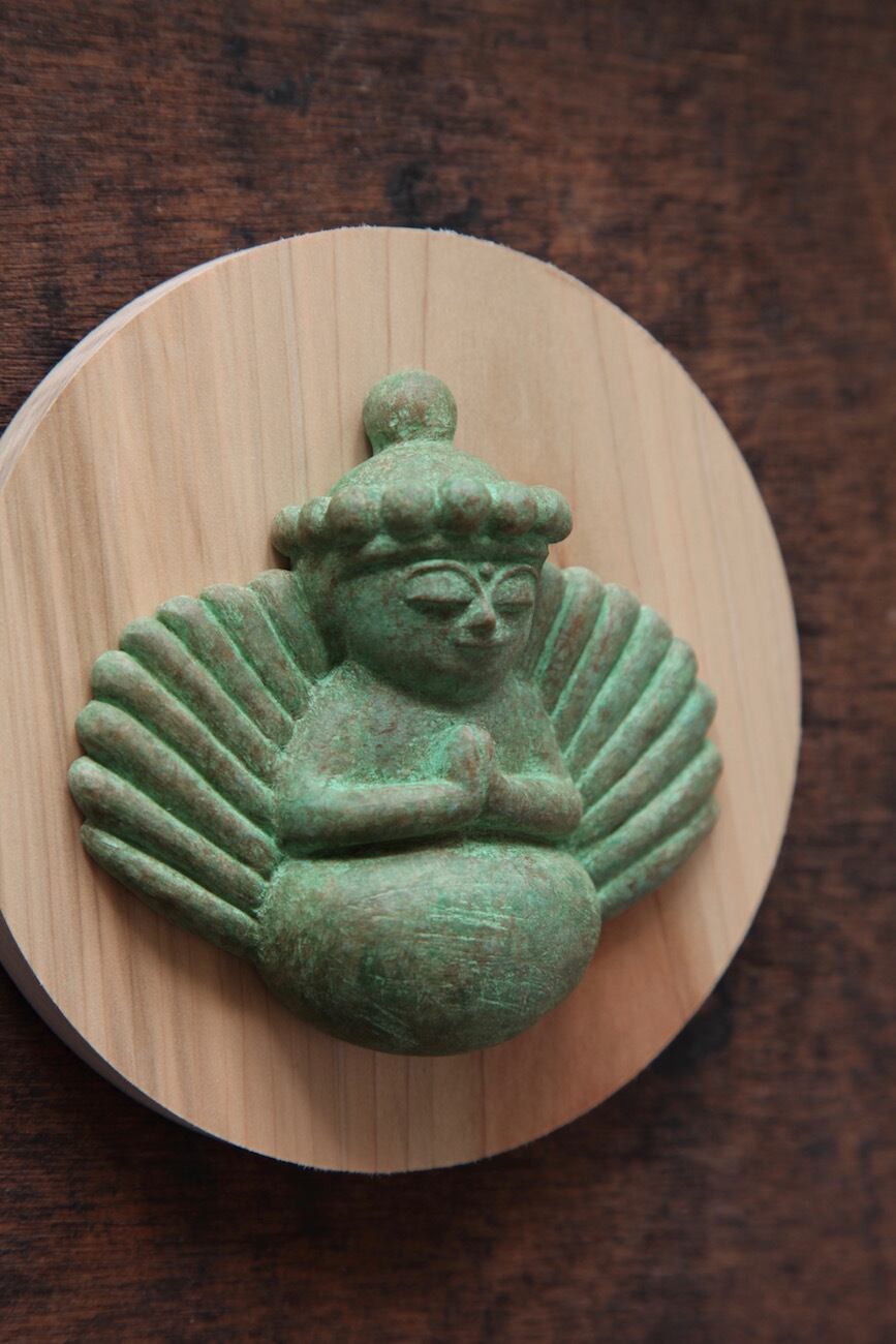 懸仏をモチーフにした塑像です。彩色はアクリル塗料で古色風に仕上げております。